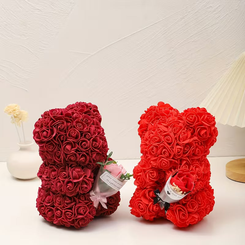 Acest ursuleț transformă trandafirii într-un cadou plin de inimă, perfect pentru orice ocazie romantică.